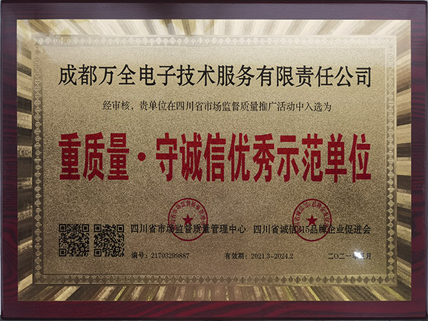 熱烈慶祝成都萬全電子榮獲"重質量·守誠信優秀示范單位"稱號
